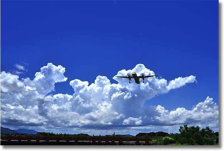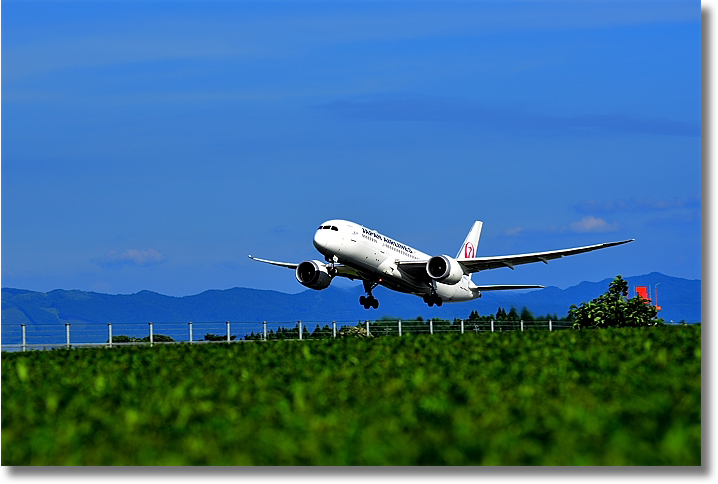 終わりの見えない新型コロナ、何とかなりませんかネェ〜(泣) 2017年7月、普段見れないJALのB787が、 チャーター便として鹿児島空港にやって来た時の写真です。 これはその離陸シーン。 青空と茶畑とヒコーキ、フェンスが写らないようにしゃがんで カメラを構えたのですが、どこからヒコーキが出てくるのか分からなかったので ついうっかり頭を上げてしまって、フェンスが映り込んでしまいました。 まぁいつもの事ですが、なんだかナァ〜でございます (笑) 梅雨は明けたけど、コロナが蔓延してるので、もうしばらく出撃は控えましょう! |