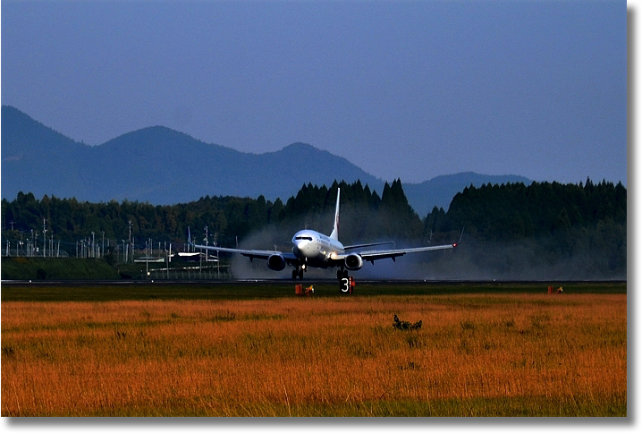 鹿児島空港RW16、砂ほこりを巻き上げながら着陸。 撮影は2013年11月、最近は堂々と古い写真を出しております (汗) この空港内の芝ですが、紅葉ではないんでしょうけど、秋になると こんな良い色になります。 宮崎空港では見られないんですよね。 さぁもういーくつ寝ると〜お正月♪、大きいヒコーキは来るのかな?? 最近宮崎空港ではB3しか見かけませんからネェ〜 (泣) せめてB6、あまり期待しないで待つ事にしましょう、トホホ。 |